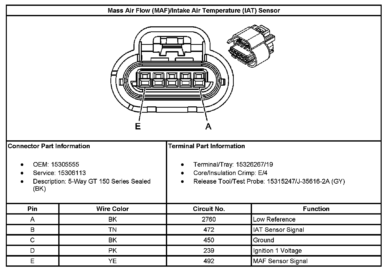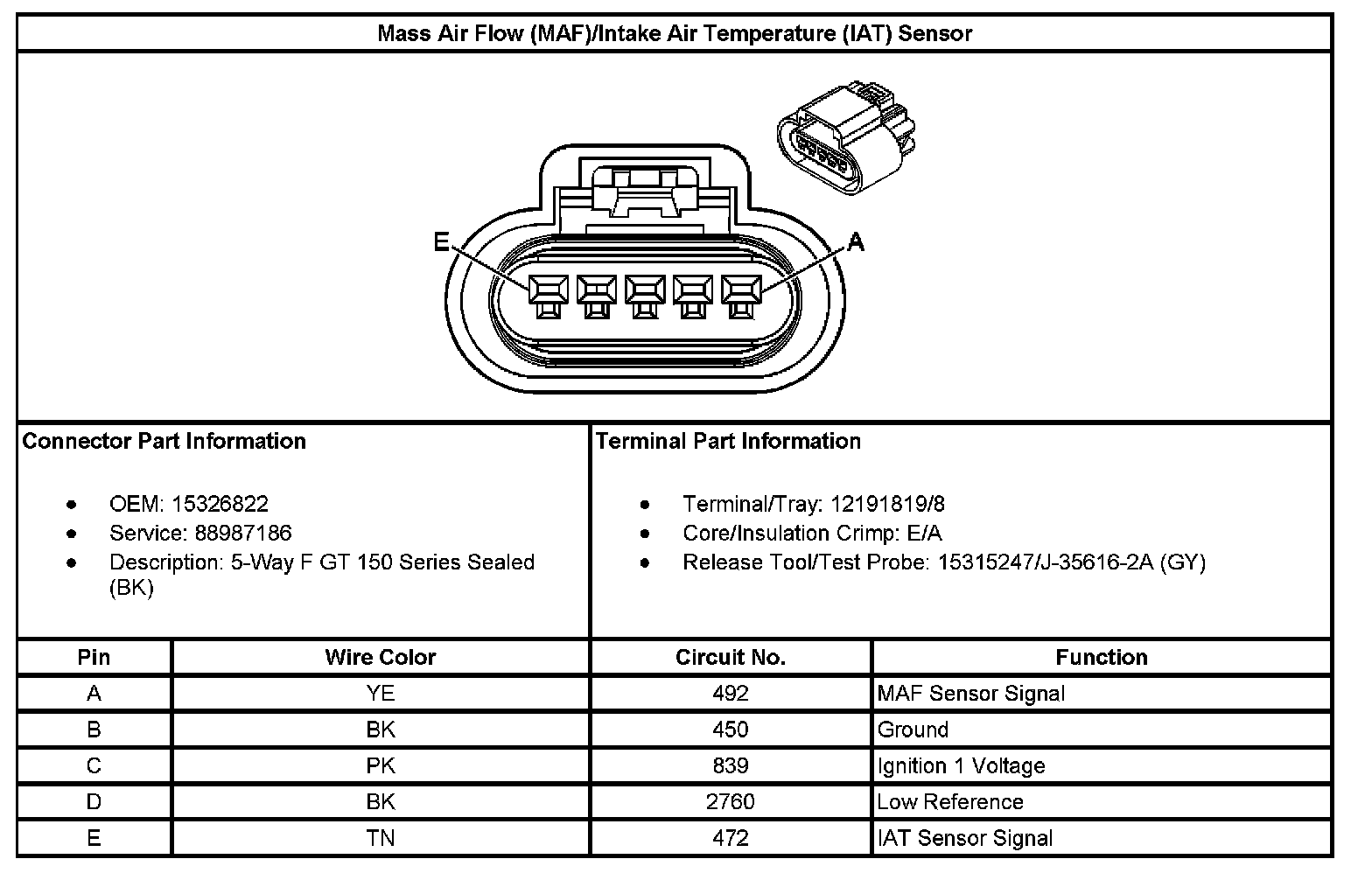 Mass Air Flow (MAF)/Intake Air Temperature (IAT) Sensor: