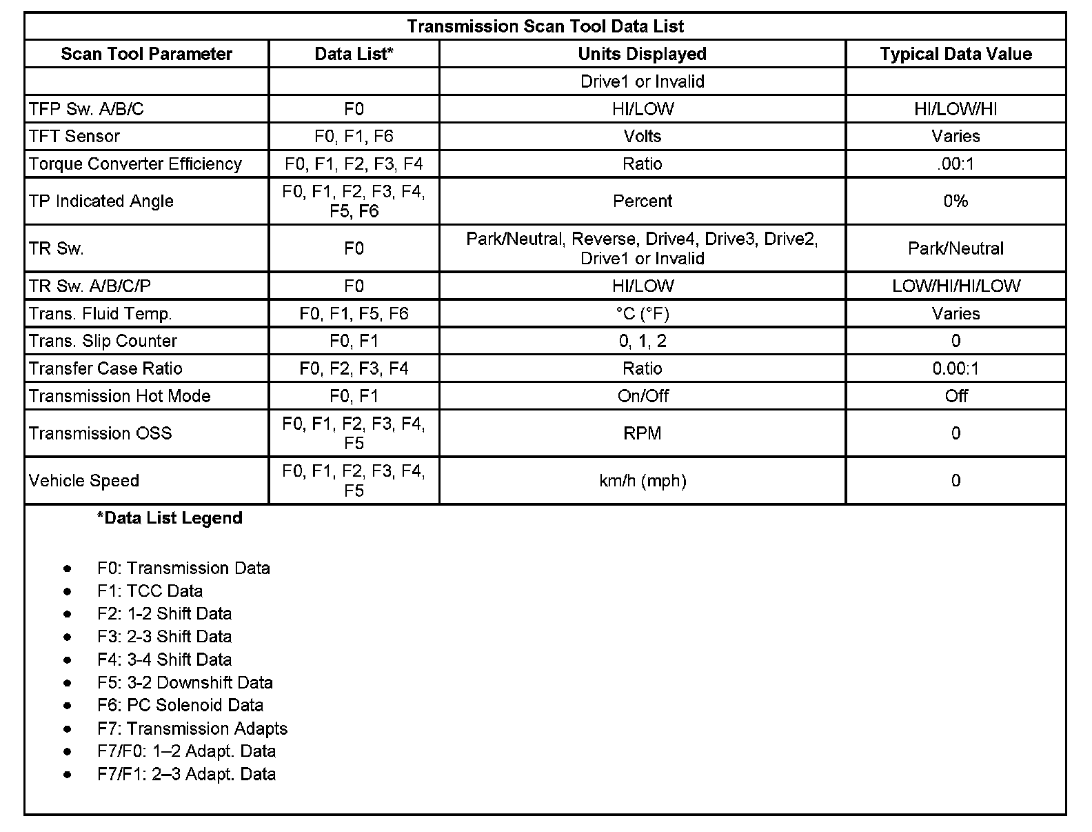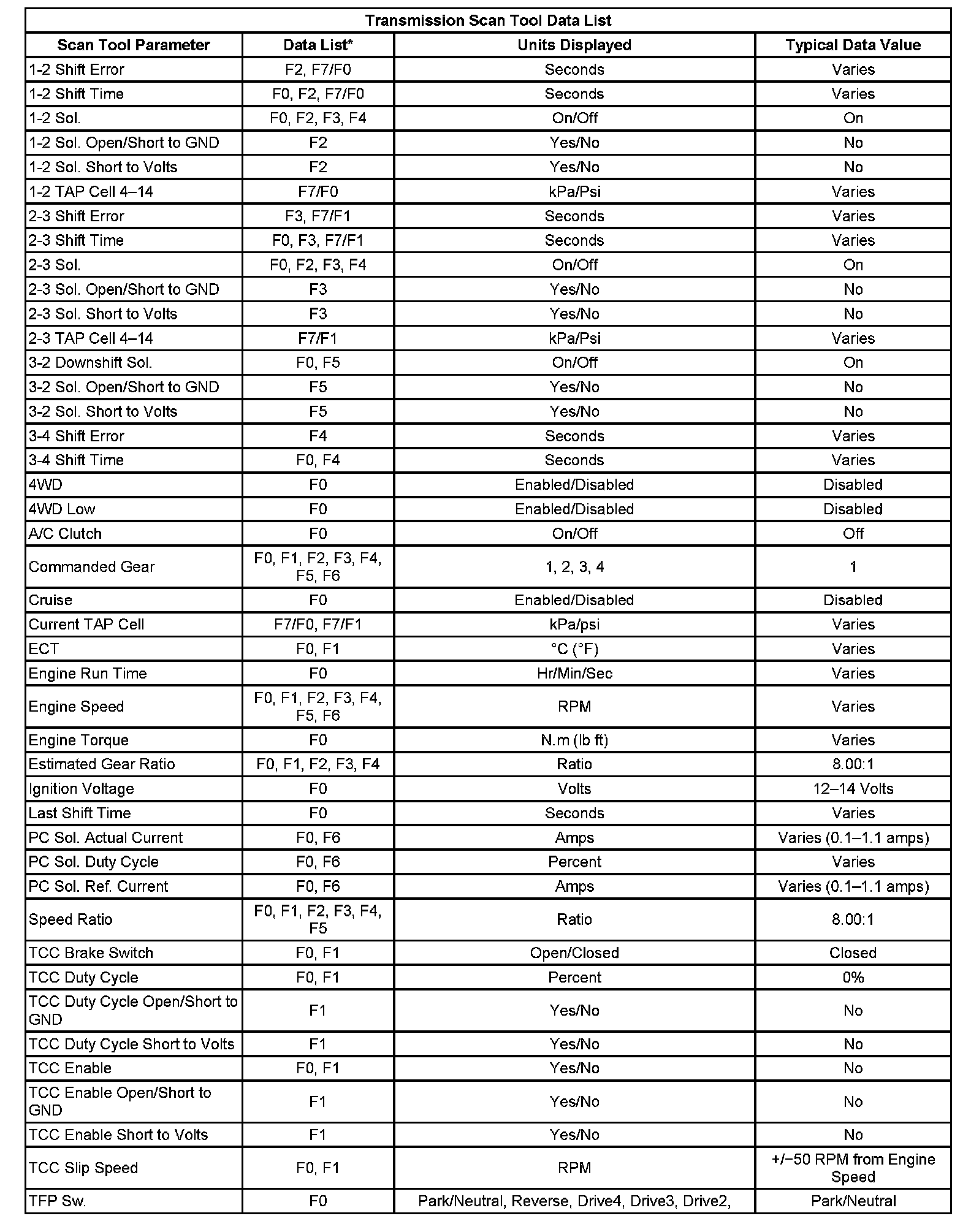 Home >> Isuzu >> 2006 >> Ascender 2WD L6-4.2L >> Repair and Diagnosis >> Powertrain Management >> Transmission Control Systems >> Testing and Inspection >> Scan Tool Testing and Procedures >> Scan Tool Data List