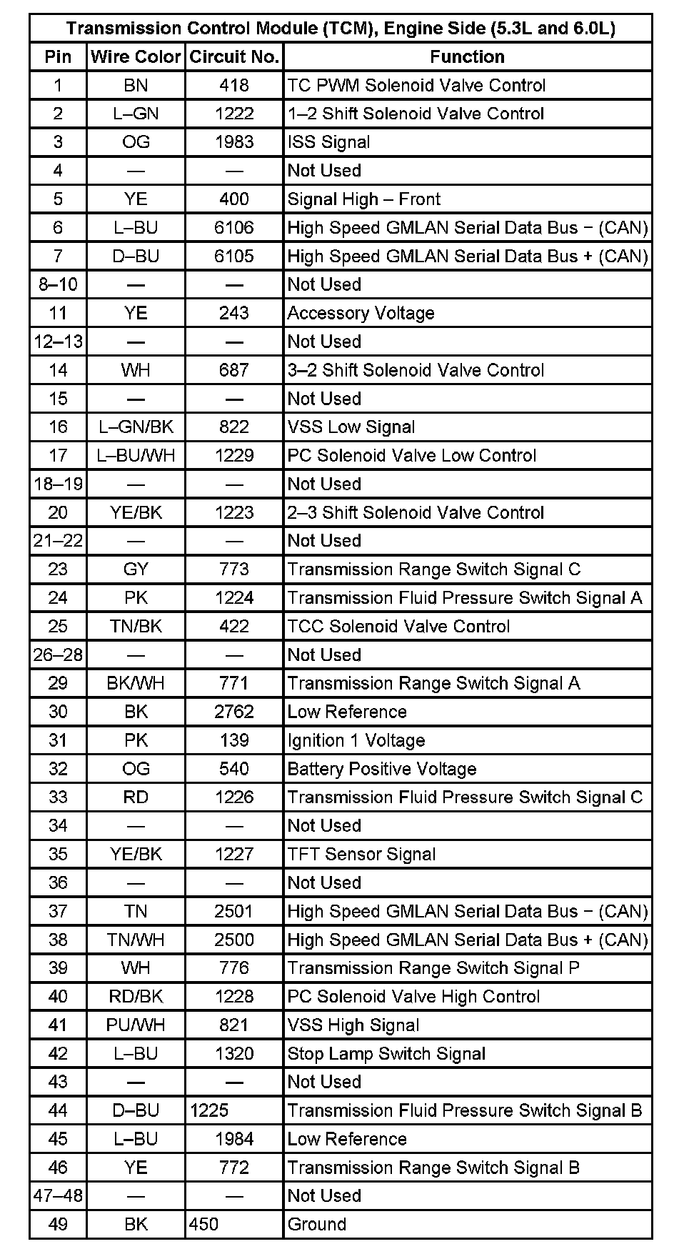 Transmission Control Module (TCM), Engine Side (5.3L and 6.0L):