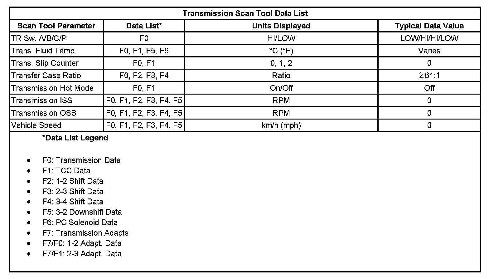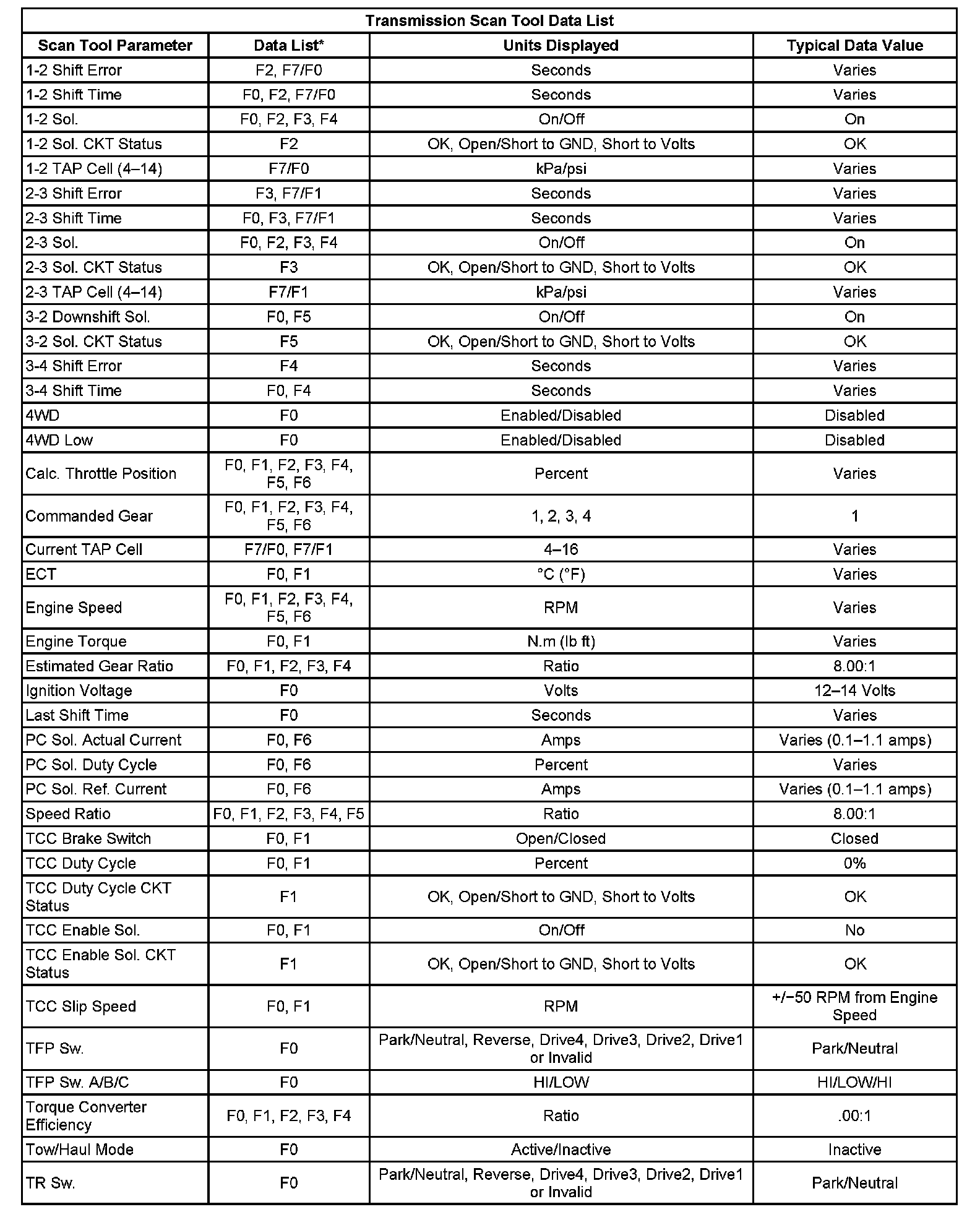 Home >> Isuzu >> 2006 >> Ascender 2WD V8-5.3L >> Repair and Diagnosis >> Powertrain Management >> Transmission Control Systems >> Testing and Inspection >> Scan Tool Testing and Procedures >> Scan Tool Data List