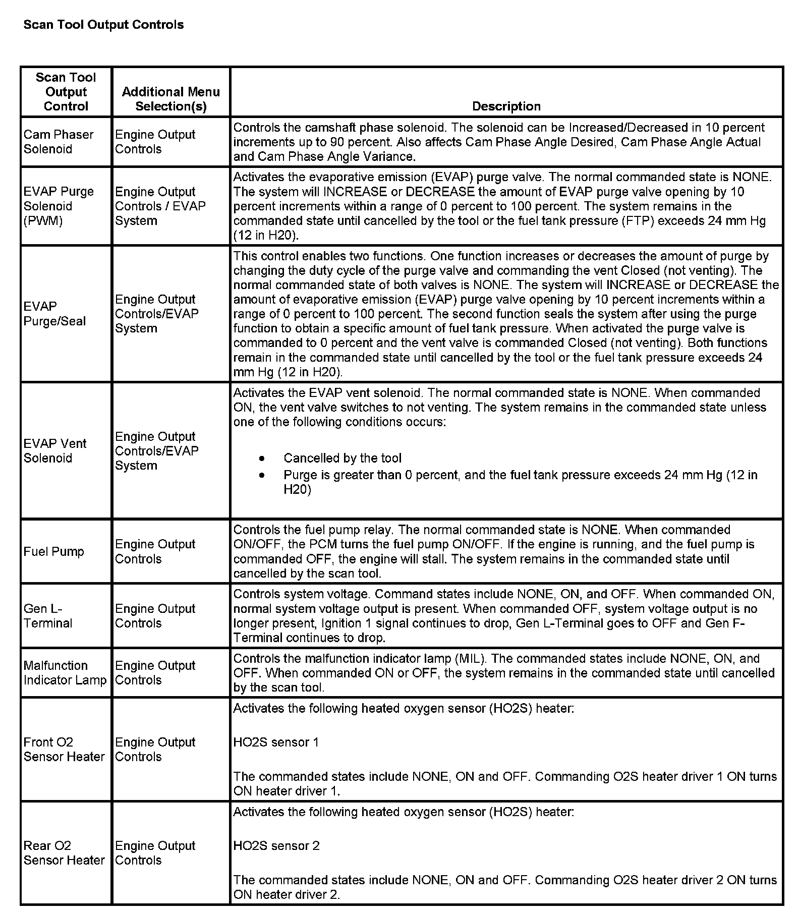Scan Tool Output Controls: