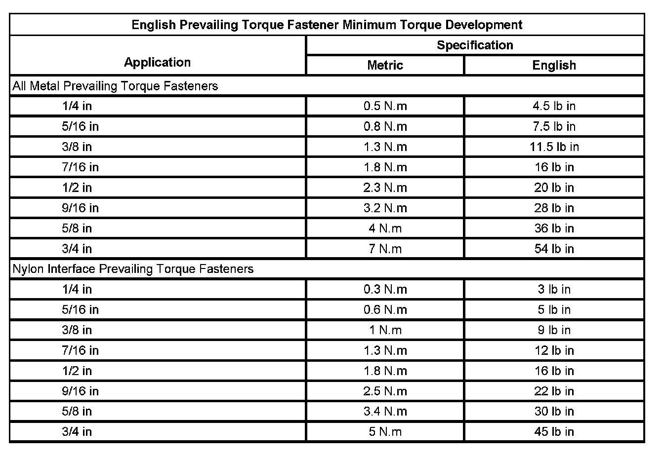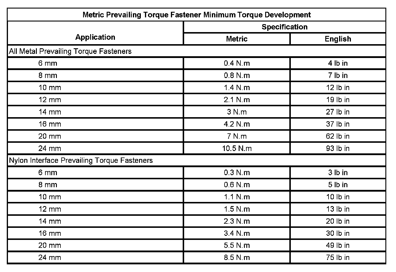Prevailing Torque Fasteners