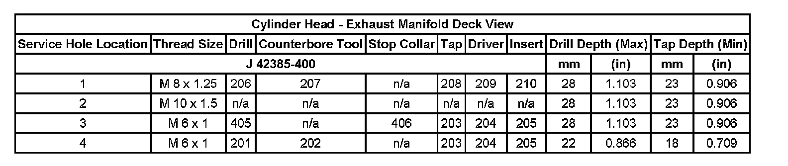 Thread Repair SpecificationsCylinder Head - Exhaust Manifold Deck View: