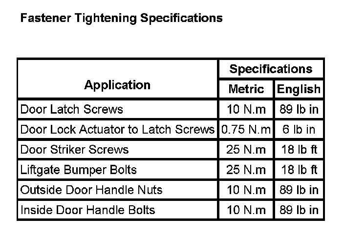 Fastener Tightening Specifications: