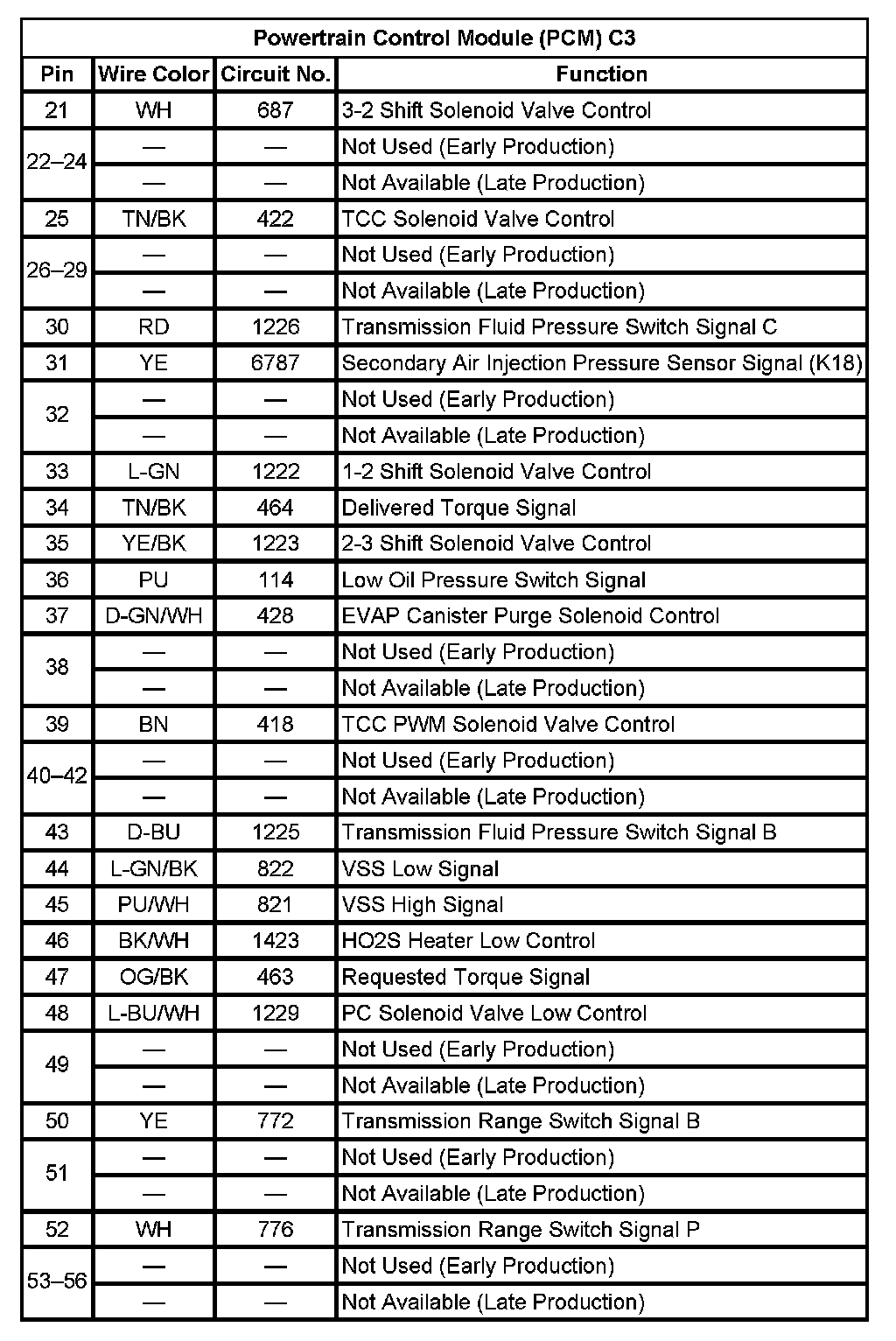 Powertrain Control Module (PCM) C3 (Pin 21 To 56):