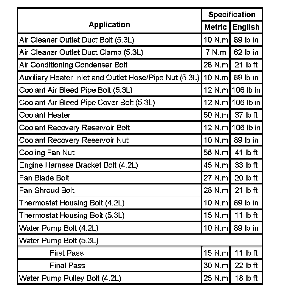 Fastener Tightening Specifications: