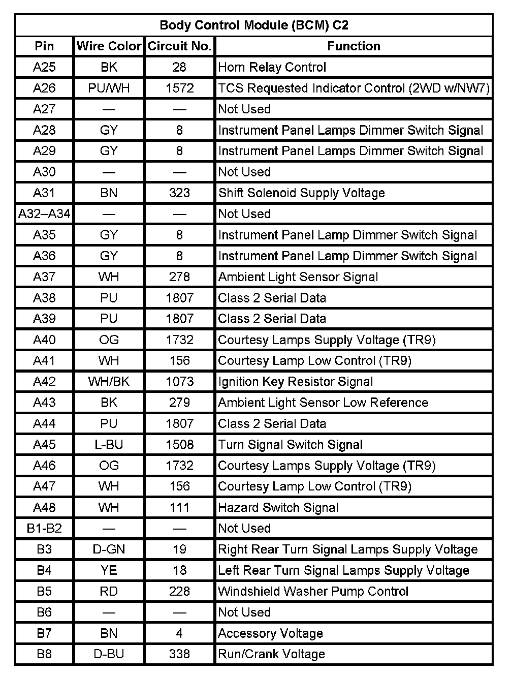 Body Control Module (BCM) C2 (Part 2):