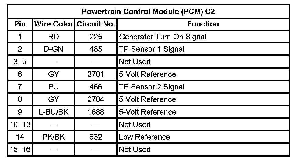 Powertrain Control Module (PCM) C2 (Pin 1 To 16):