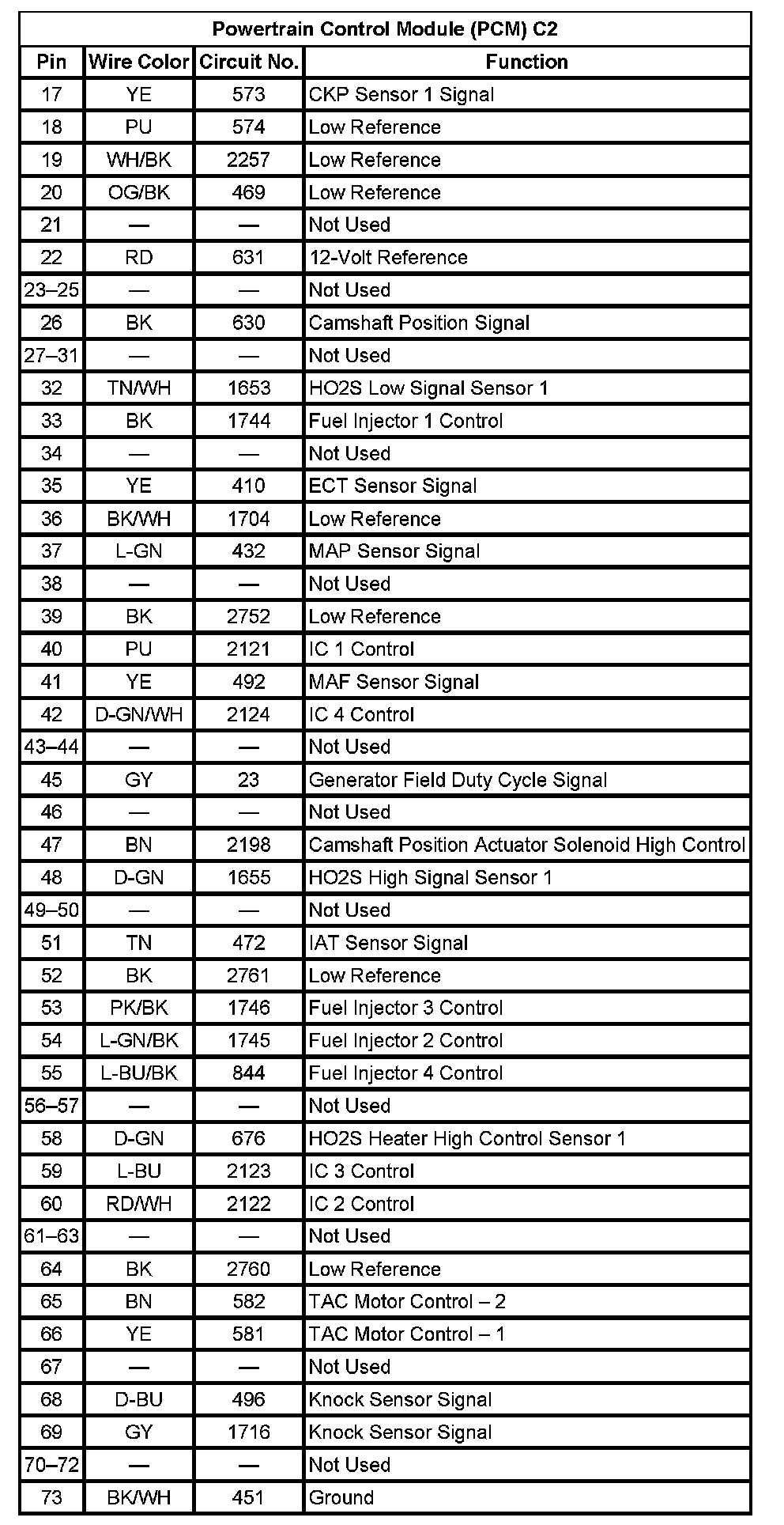 Powertrain Control Module (PCM) C2 (Pin 17 To 73):