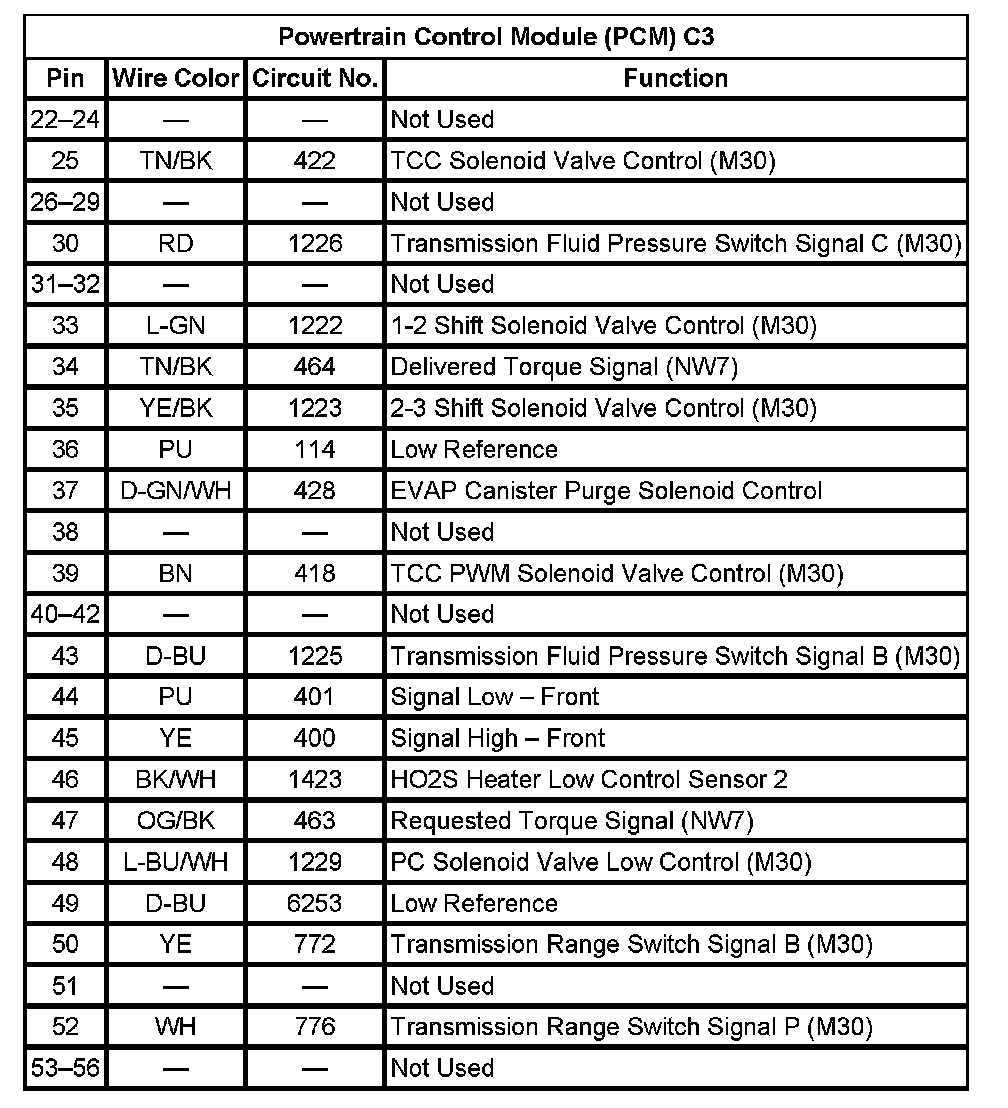 Powertrain Control Module (PCM) C3 (Pin 22 To 56):