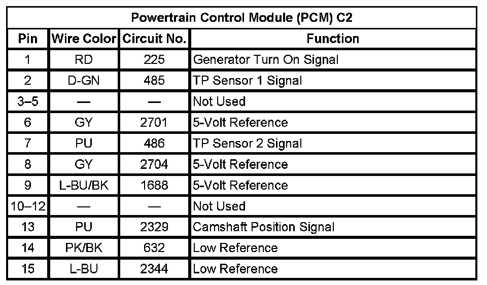 Powertrain Control Module (PCM) C2 (Pin 1 To 15):