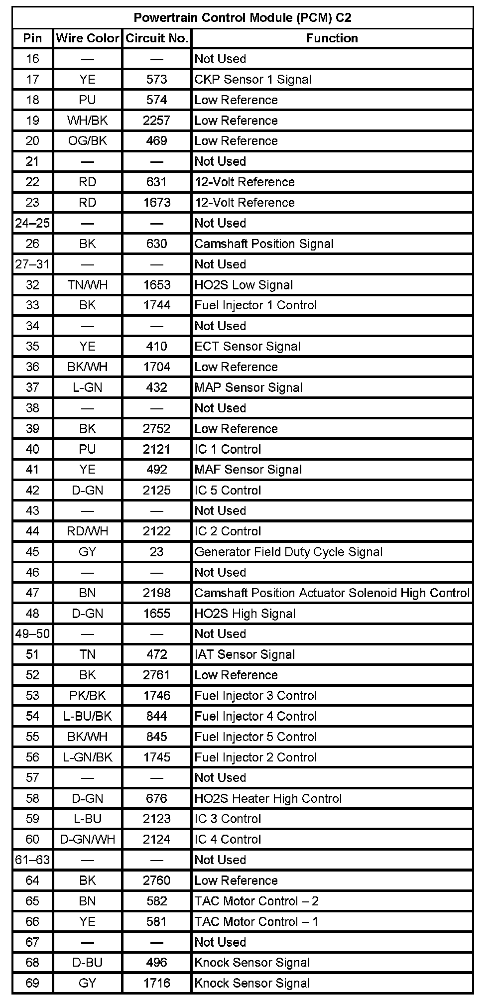 Powertrain Control Module (PCM) C2 (Pin 16 To 69):