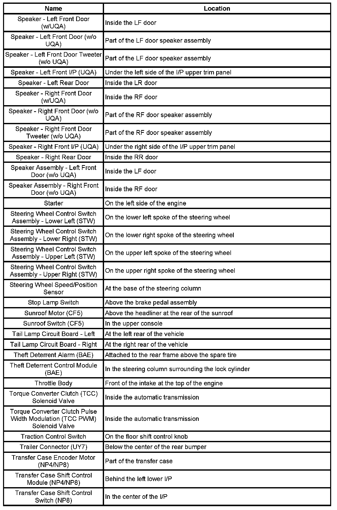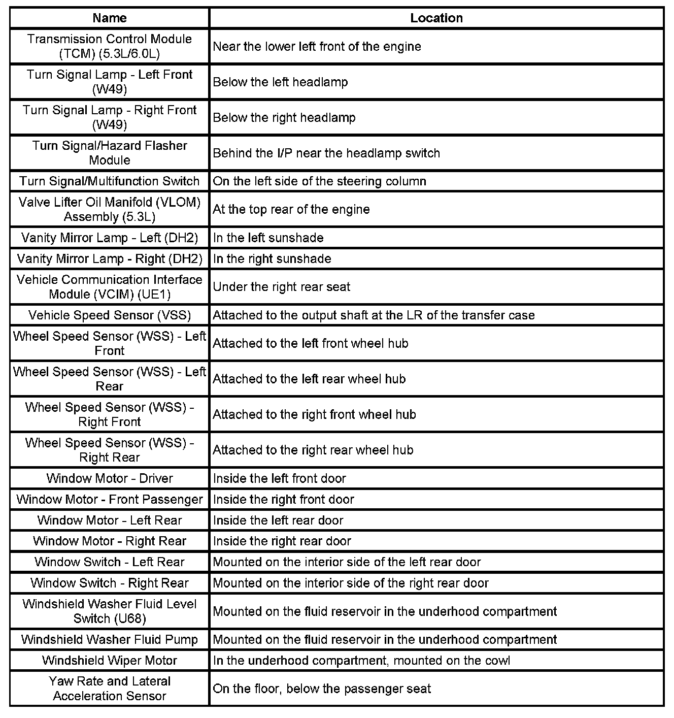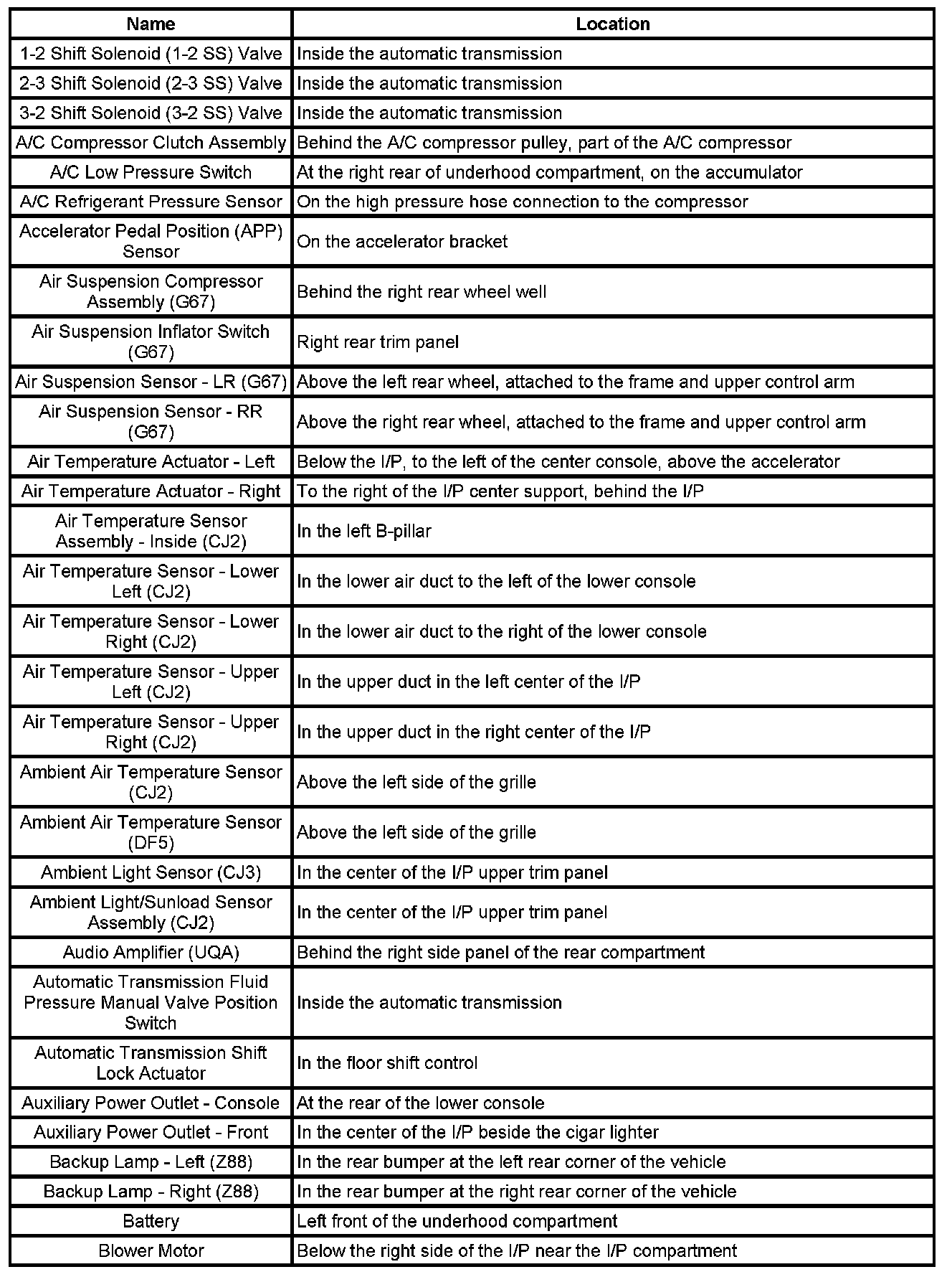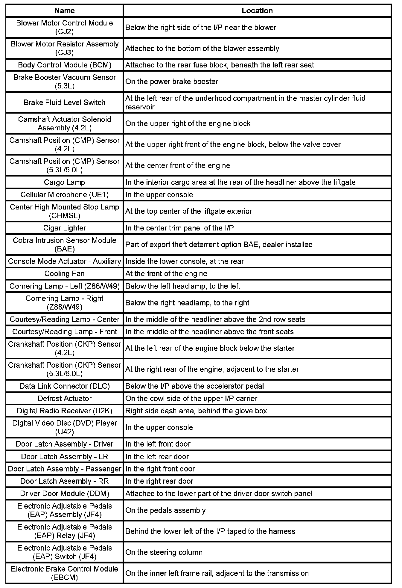 Master Electrical Component List