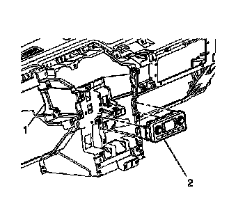 4. Disconnect the electrical connectors (1) from the HVAC control module (2).
