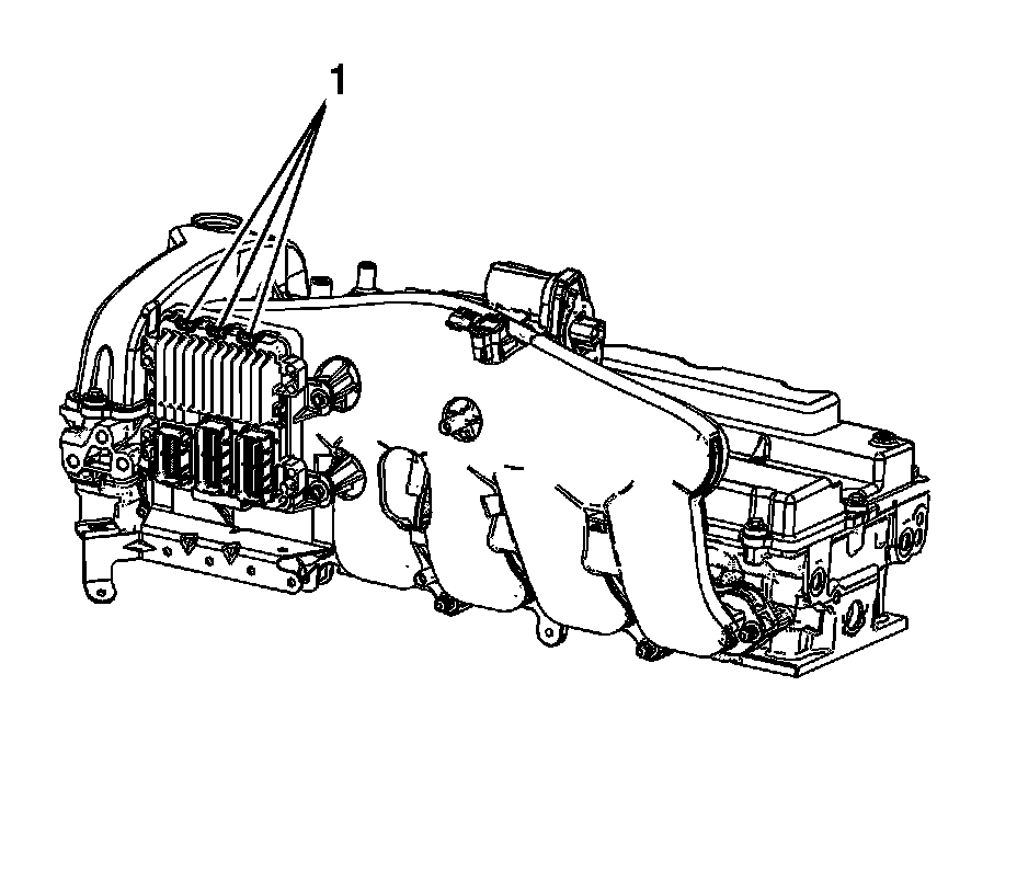 1. Install the ECM and bracket assembly (3) to the studs on the intake manifold