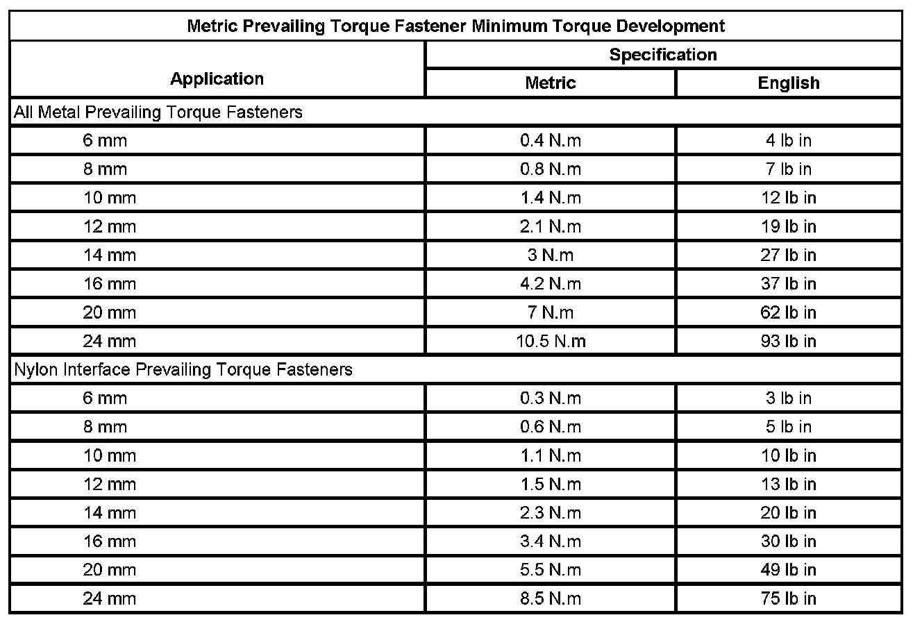 * The fastener develops the specified minimum torque against its counterpart prior to the fastener seating