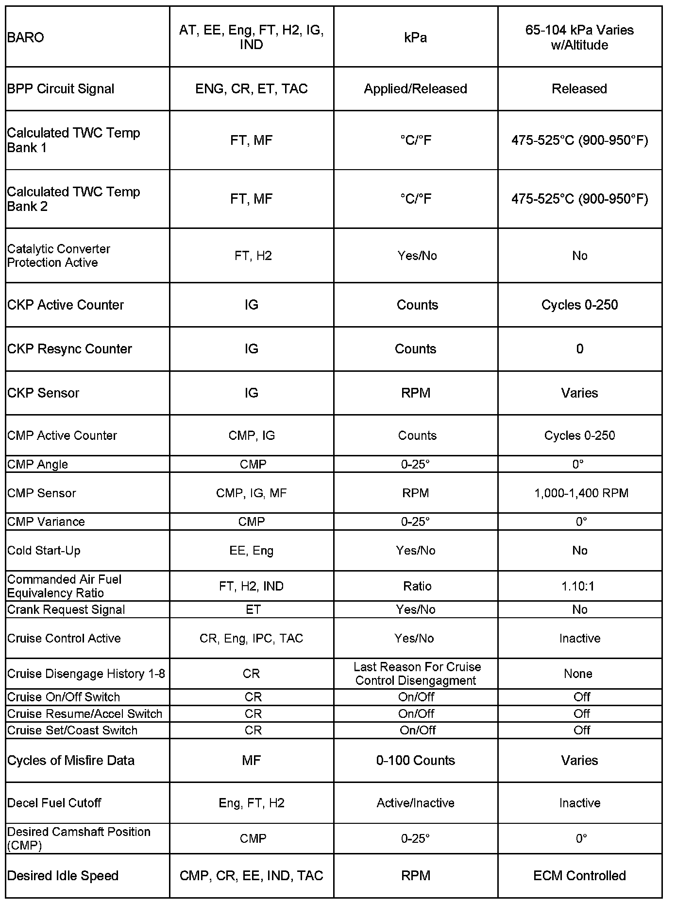 The column labeled Data List indicates where a parameter can be located on the scan tool. Refer to the scan tool operating manual for the exact locations of the data lists. The following is a description of each term listed: