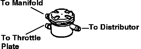 1. Locate vacuum regulator under intake manifold and disconnect vacuum hose to distributor port. It is marked DIST.