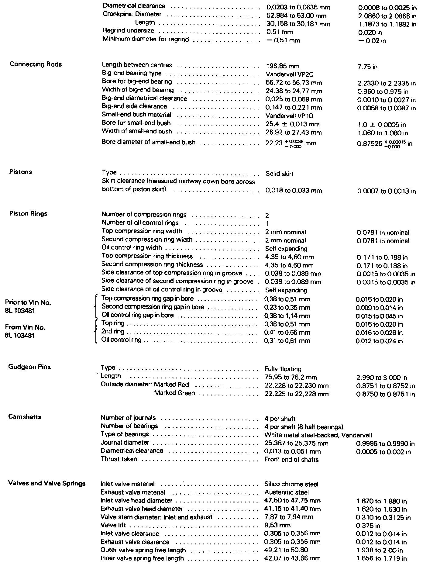 Jaguar 4.2L engines are numbered from the rear to front. Number 1 cylinder is next to the firewall.General Data