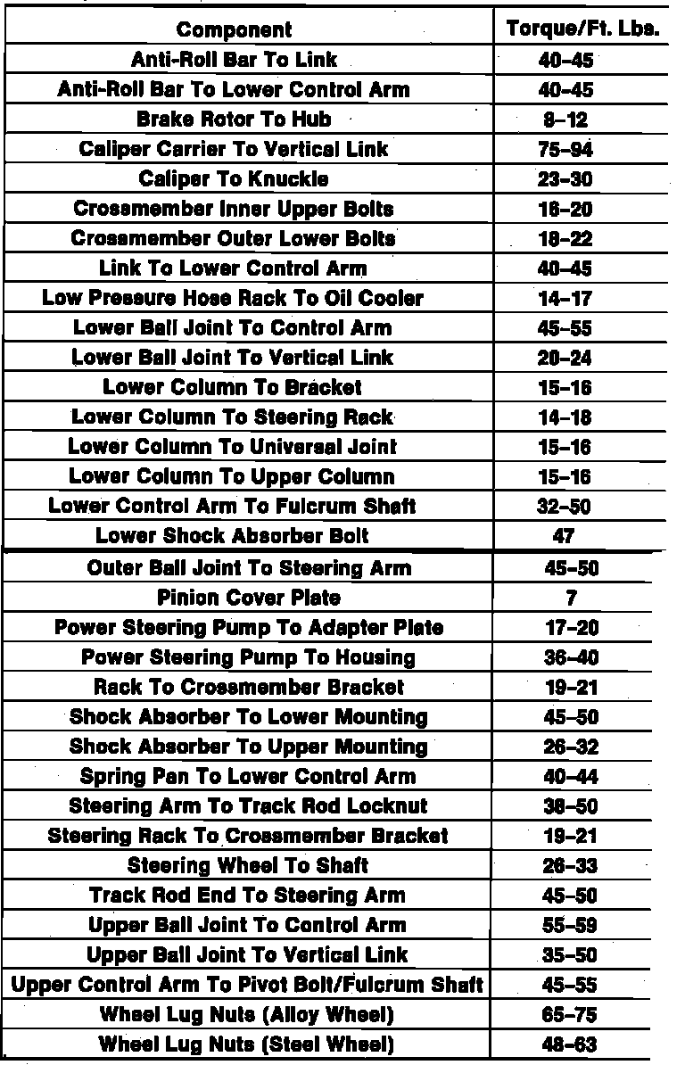 Tightening Specifications: