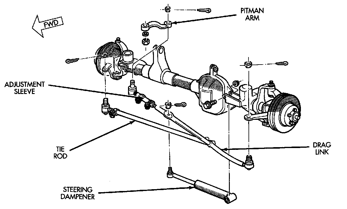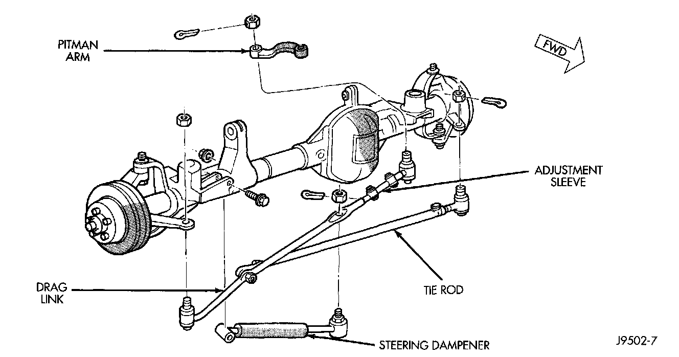 NOTE: Once the toe setting is correct, the steering wheel can be re-centered by adjusting only the drag link.