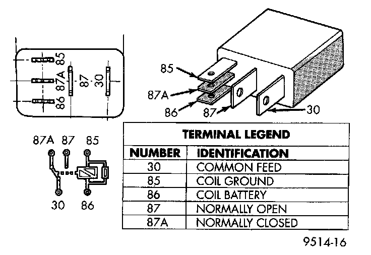 - Terminal number 86 supplies voltage to the coil side of the relay.