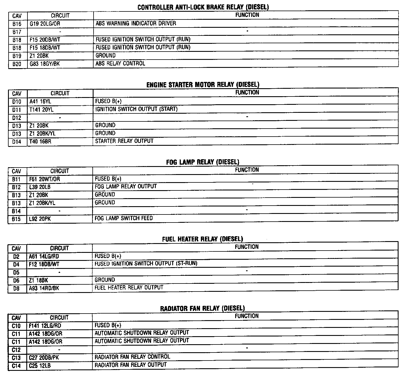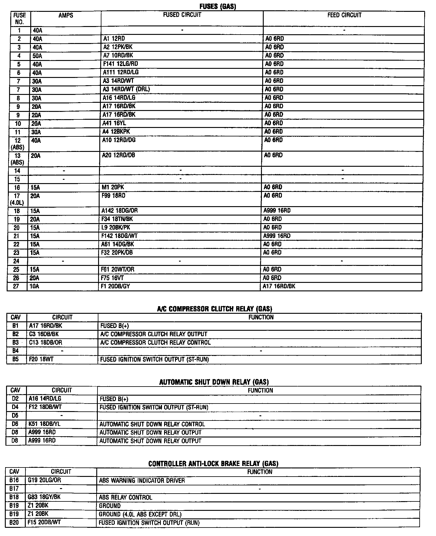Connector Pin Out Tables 3 of 4