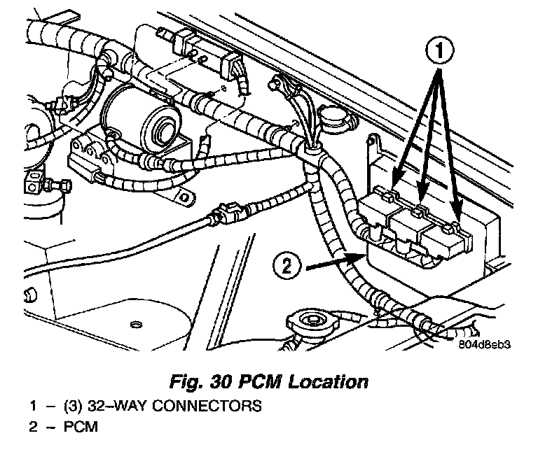7. Use the DRB scan tool to reprogram new PCM with vehicles original Identification Number (VIN) and original vehicle mileage.