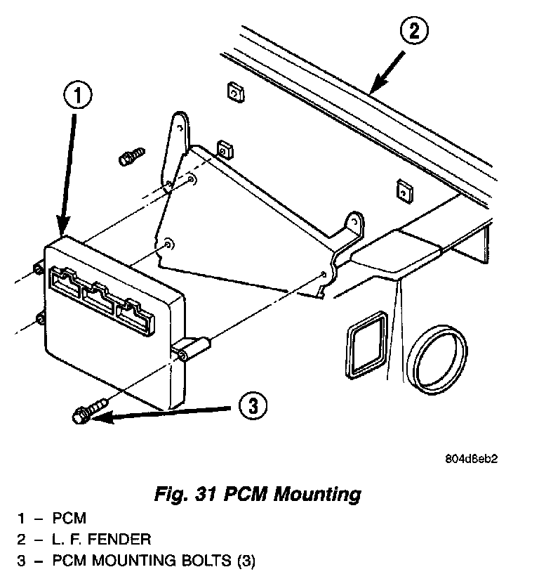 4. Remove three PCM mounting bolts and remove PCM from vehicle,