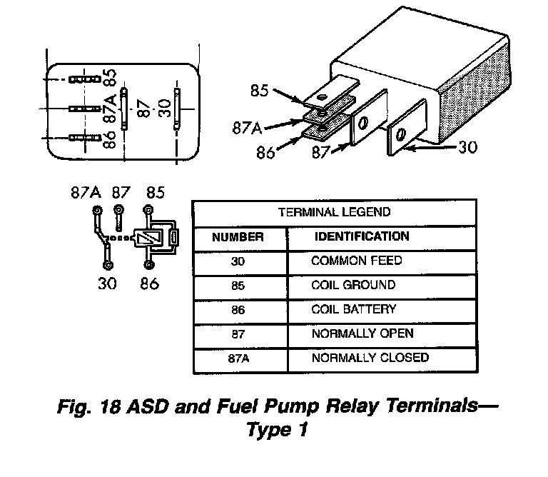 Fig. 18 ASD And Fuel Pump Relay Terminals - Type 1: