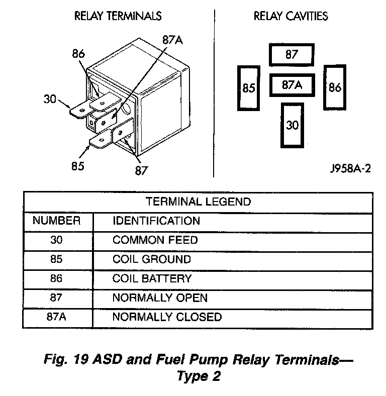 Fig. 19 ASD And Fuel Pump Relay Terminals - Type 2:
