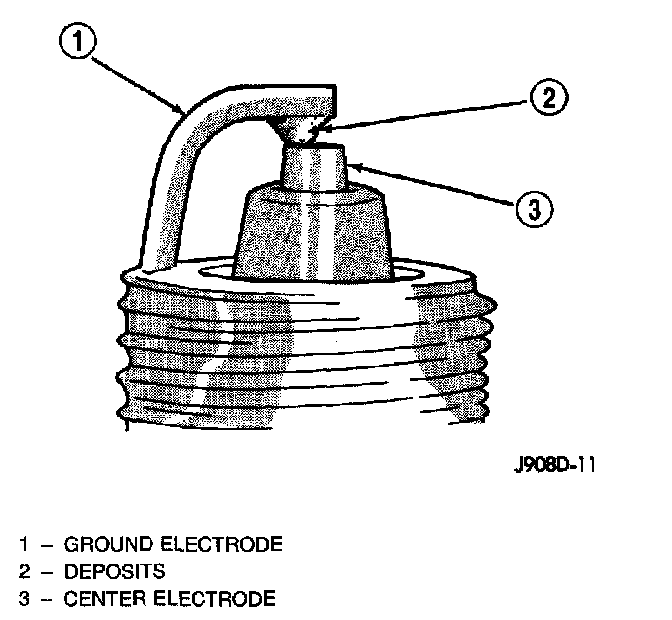 The few deposits present on the spark plug will probably be light tan or slightly gray in color. This is evident with most grades of commercial gasoline. There will not be evidence of electrode burning. Gap growth will not average more than approximately 0.025 mm (.001 in) per 3200 km (2000 miles) of operation. Spark plugs that have normal wear can usually be cleaned, have the electrodes filed, have the gap set and then be installed.