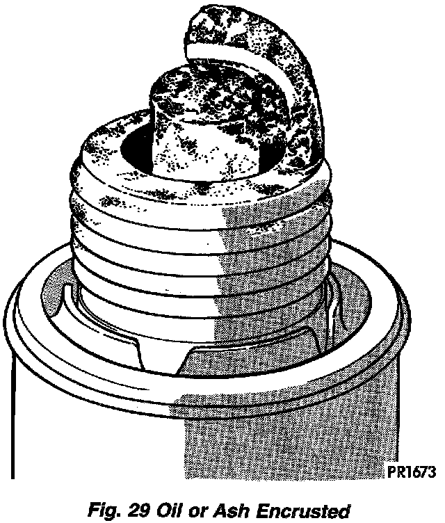 If one or more spark plugs are oil or oil ash encrusted, evaluate engine condition for the cause of oil entry into that particular combustion chamber.