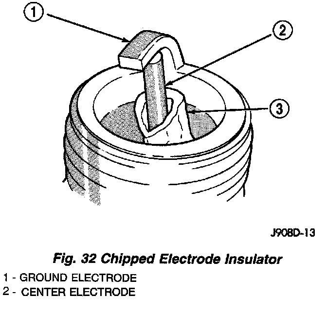 A chipped electrode insulator usually results from bending the center electrode while adjusting the spark plug electrode gap. Under certain conditions, severe detonation can also separate the insulator from the center electrode. Spark plugs with this condition must be replaced.