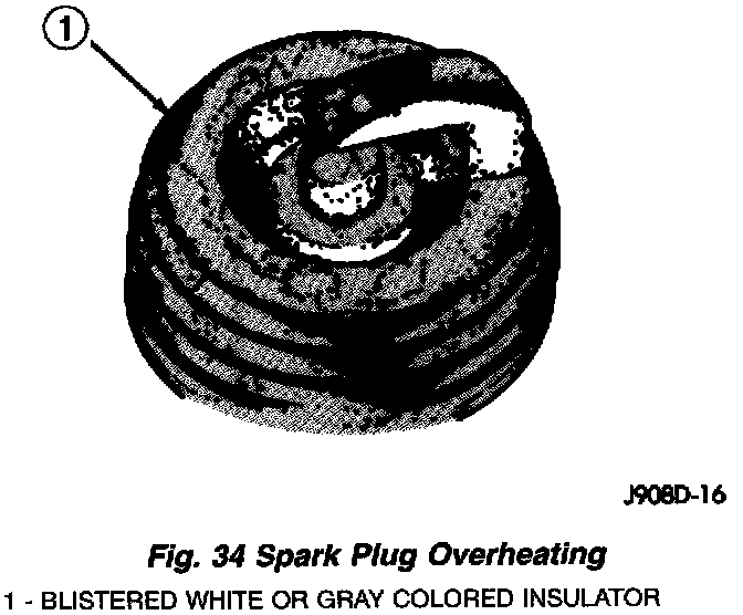 The few deposits present on the spark plug will probably be light tan or slightly gray in color. This is evident with most grades of commercial gasoline. There will not be evidence of electrode burning. Gap growth will not average more than approximately 0.025 mm (.001 in) per 3200 km (2000 miles) of operation. Spark plugs that have normal wear can usually be cleaned, have the electrodes filed, have the gap set and then be installed.