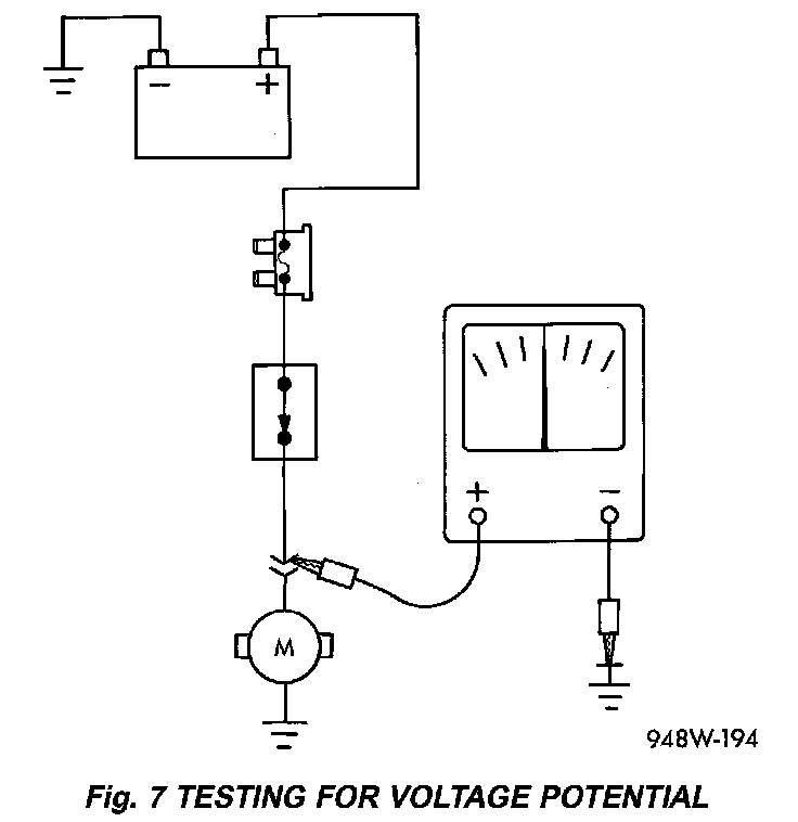 1. Connect the ground lead of a voltmeter to a known good ground (Fig. 7).