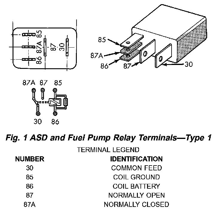 ASD AND FUEL PUMP RELAYSFig.1 ASD And Fuel Pump Relay Terminals - Type 1: