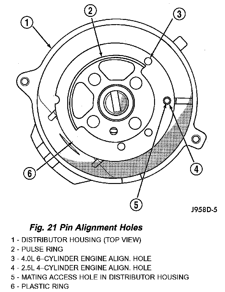 6. Four different alignment holes are provided on plastic ring. Note that 2.5L and 4.0L engines have different alignment holes.