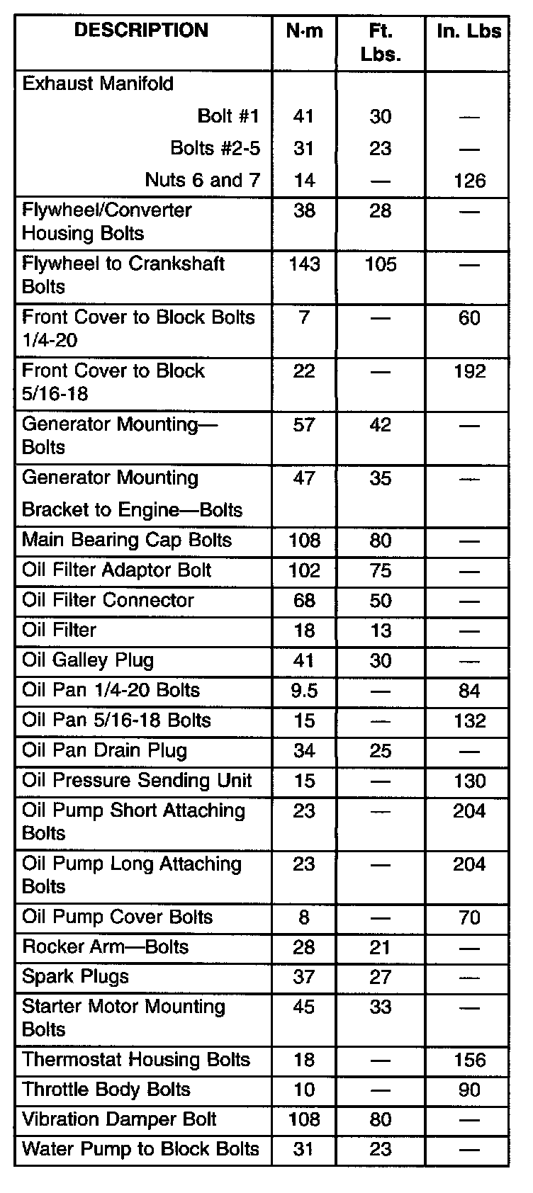 Engine Torque Specifications