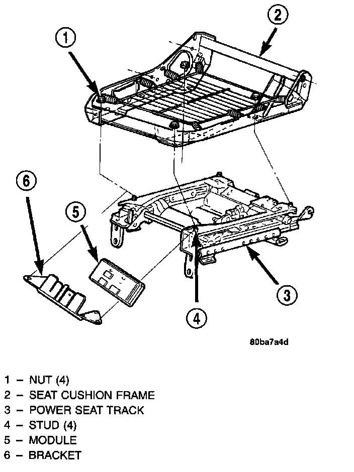 NOTE: If the vehicle is equipped with the optional Memory System, following installation, it will be necessary to initialize the Memory Heated Seat Module (MHSM). In order to function properly, the MHSM must "learn" the sensor values of each of the power seat motor position transducers in each of the adjuster hard stop positions. This is done by performing the "Reset Guard Band" procedure using a DRB III scan tool and the proper Diagnostic Procedures.