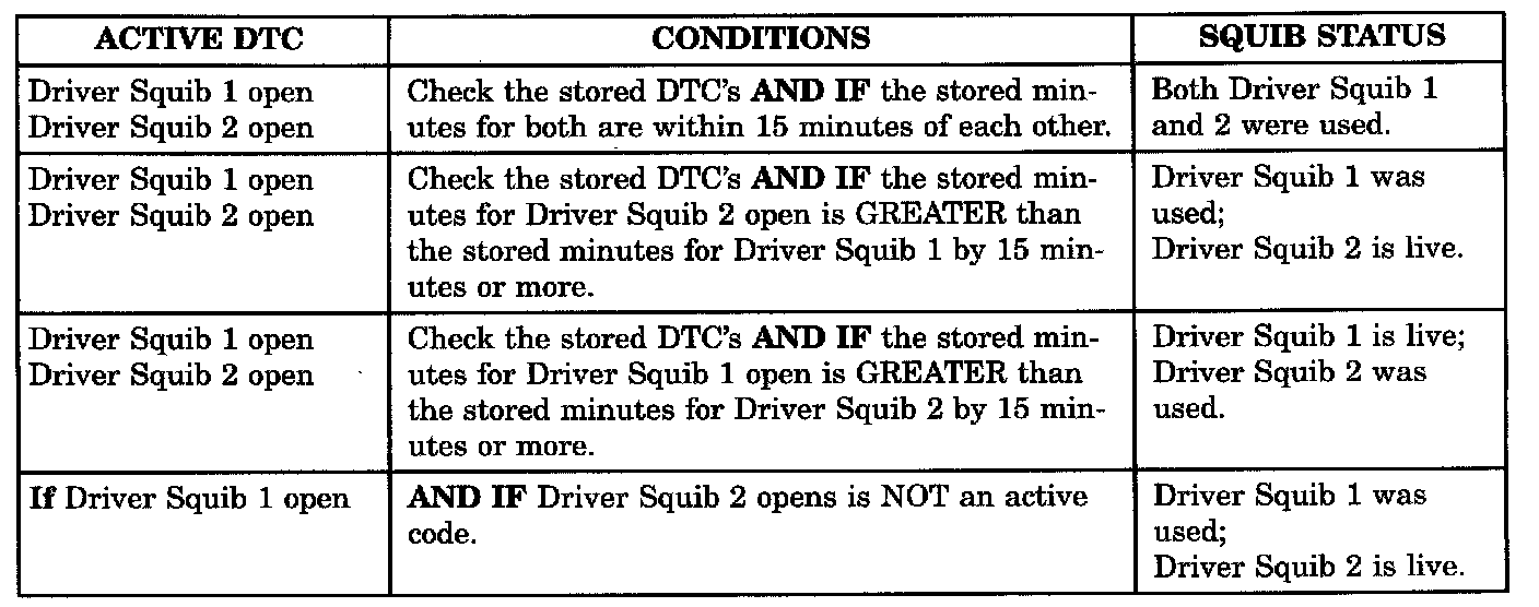 ACTIVE DTC SQUIB STATUS
