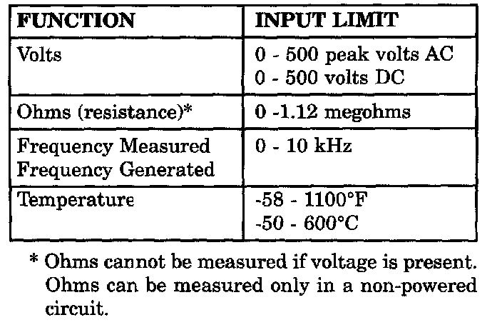 DRB III SAFETY INFORMATIONWARNING: EXCEEDING THE LIMITS OF THE DRB III MULTIMETER IS DANGEROUS. IT CAN EXPOSE YOU TO SERIOUS OR POSSIBLY FATAL INJURY. CAREFULLY READ AND UNDERSTAND THE CAUTIONS AND THE SPECIFICATION LIMITS.