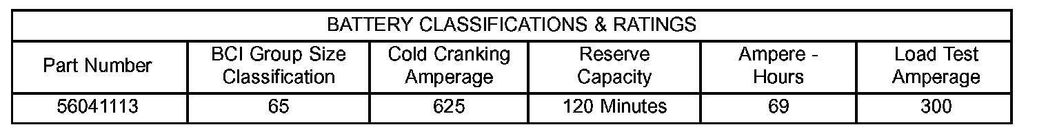 Home >> Jeep >> 2003 >> Grand Cherokee 2WD V8-4.7L >> Repair and Diagnosis >> Specifications >> Electrical Specifications >> Battery