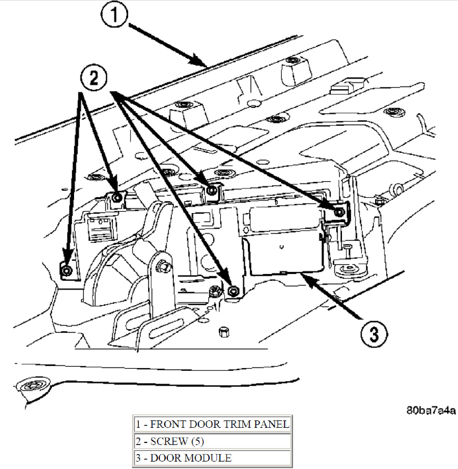 3. Remove the five screws that secure the door module to the back of the front door trim panel.