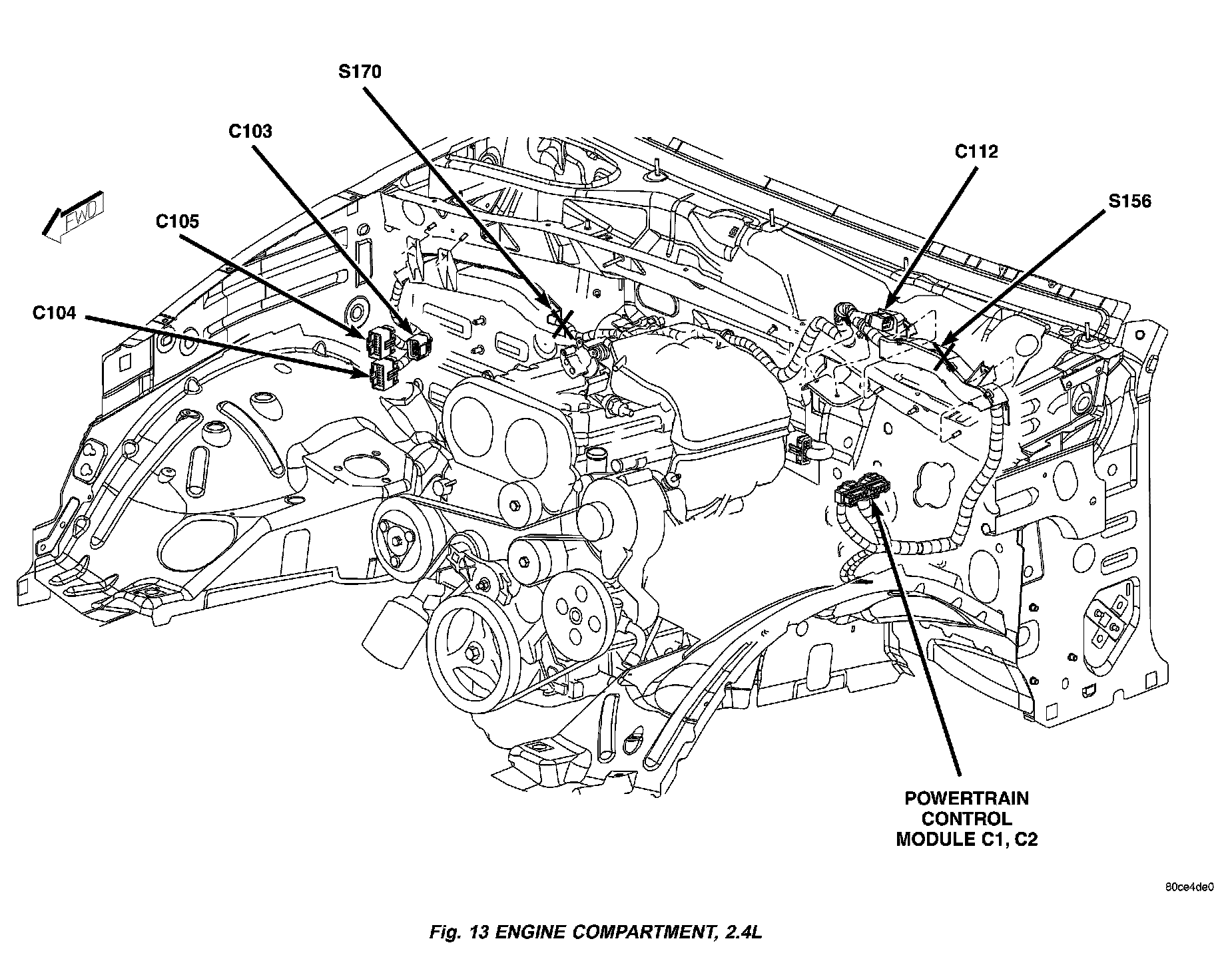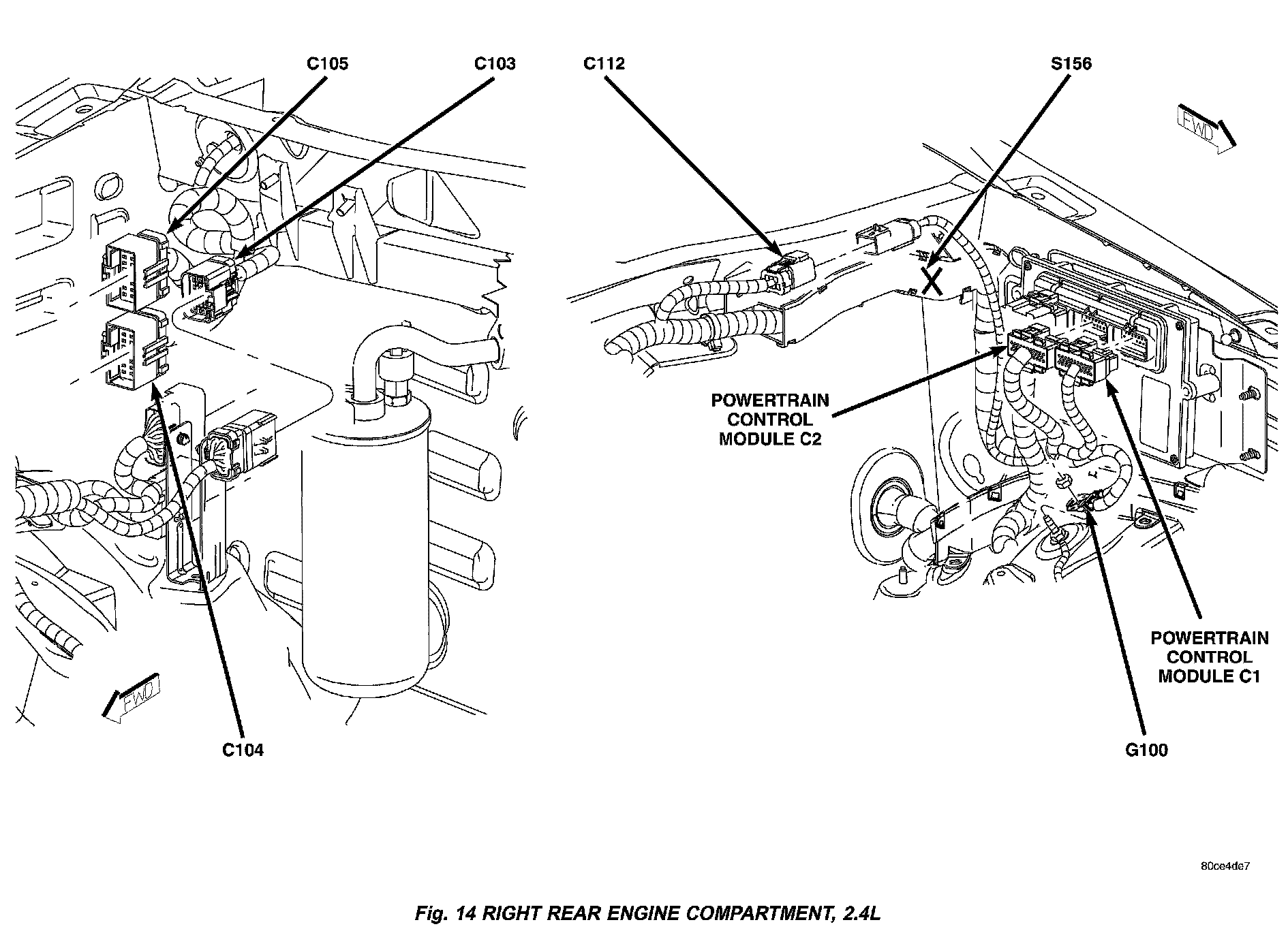 Fig. 14 Right Rear Engine Compartment, 2.4L: