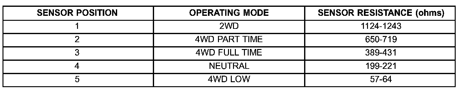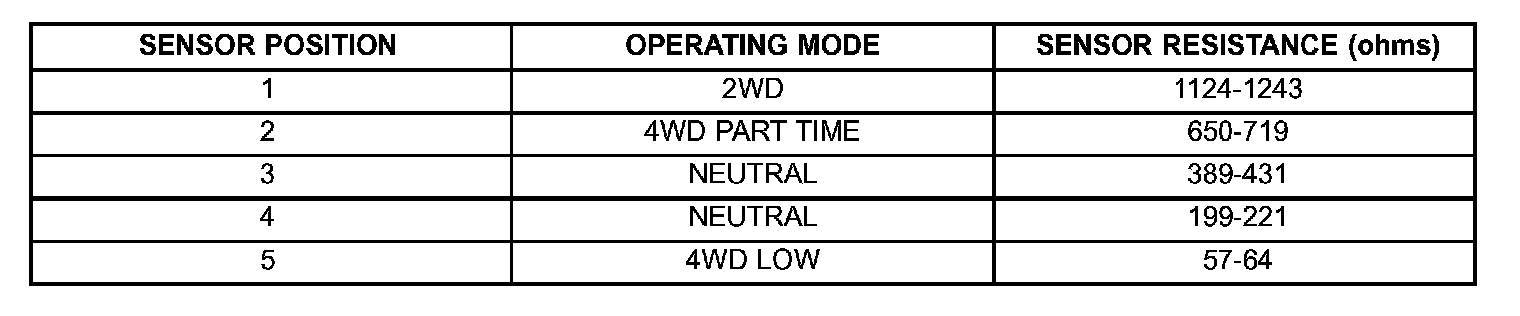 Operating Mode Versus Resistance Table / NV231 Transfer Case Position Sensor: