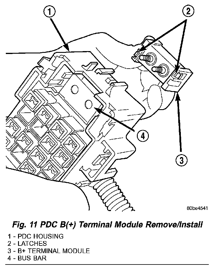 Home >> Jeep >> 2003 >> TJ (CANADA) L4-2.4L >> Repair and Diagnosis >> Power and Ground Distribution >> Power Distribution Module >> Service and Repair >> PDC B+ Terminal Module