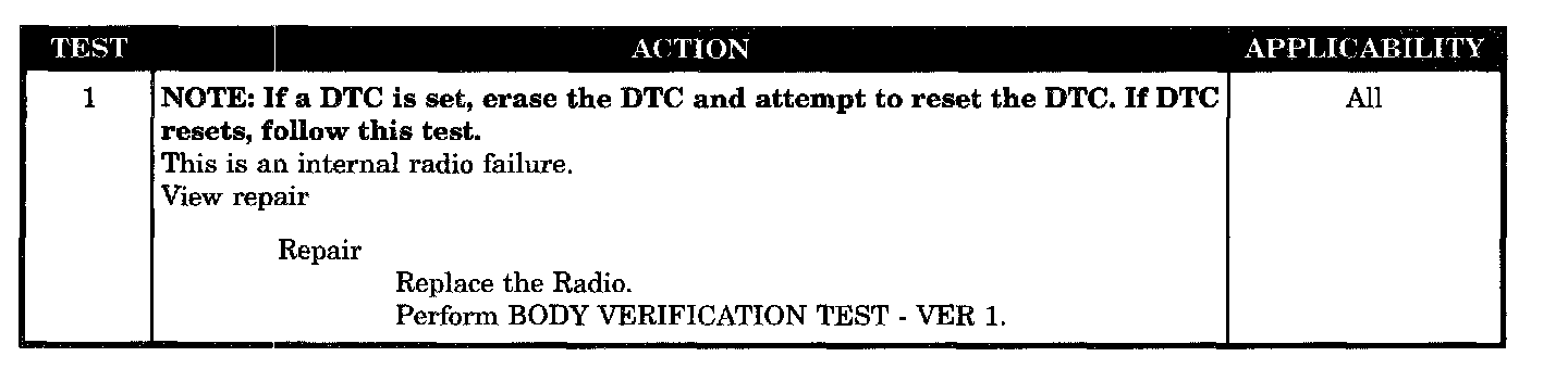 This symptom is diagnosed using the test CASSETTE PLAYER INOP.