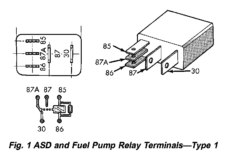 Fig. 1 ASD And Fuel Pump Relay Terminals - Type 1: