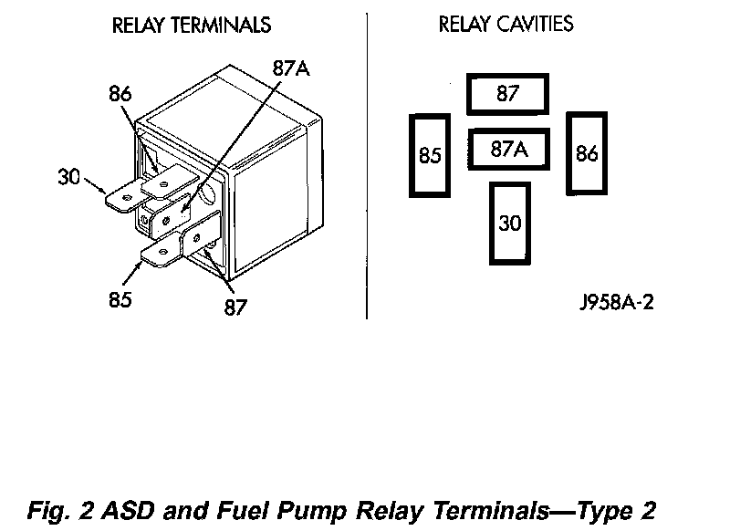 Fig. 1 ASD And Fuel Pump Relay Terminals - Type 2:
